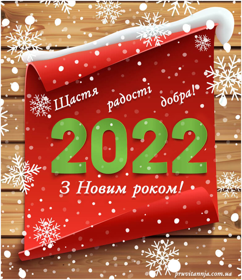 Вітаю вас з прекрасним зимовим святом – Новим 2022 роком. Роком Тигра, який змістить зі своєї посади Бика. Нехай же смугастий подарує вам якомога більше позитиву, радості та відмінного настрою! Нехай начальство буде до вас прихильним, начисляє вам премії та надбавки, а робота буде приносити тільки задоволення. Нехай у вашому домі панує гармонія та взаємне порозуміння з рідними та близькими впродовж усього року.